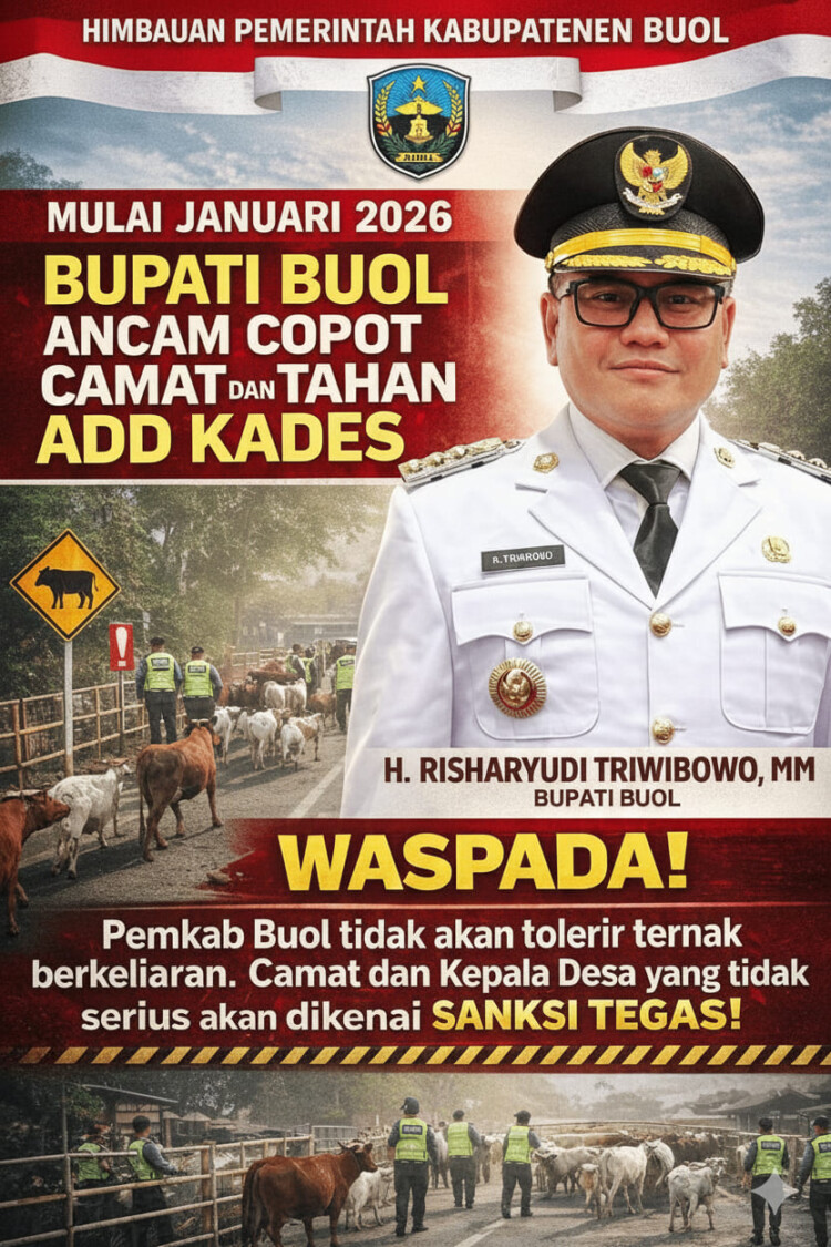 Bupati Buol H. Risharyudi Triwibowo menegaskan, persoalan ternak liar bukan lagi isu sepele. Pemerintah daerah siap menjatuhkan sanksi kepada aparatur wilayah yang tidak serius menjalankan penertiban.