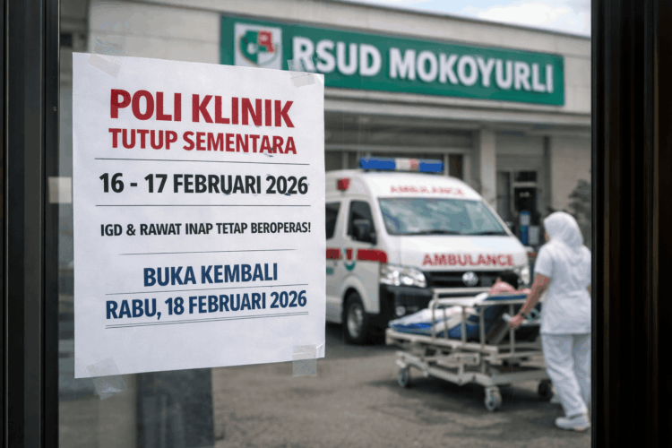 TNews, Buol – Sehubungan dengan Hari Libur Nasional dan Cuti Bersama, RSUD Mokoyurli Kabupaten Buol mengumumkan layanan Poli Klinik akan libur/tutup sementara pada Senin dan Selasa, 16–17 Februari 2026.