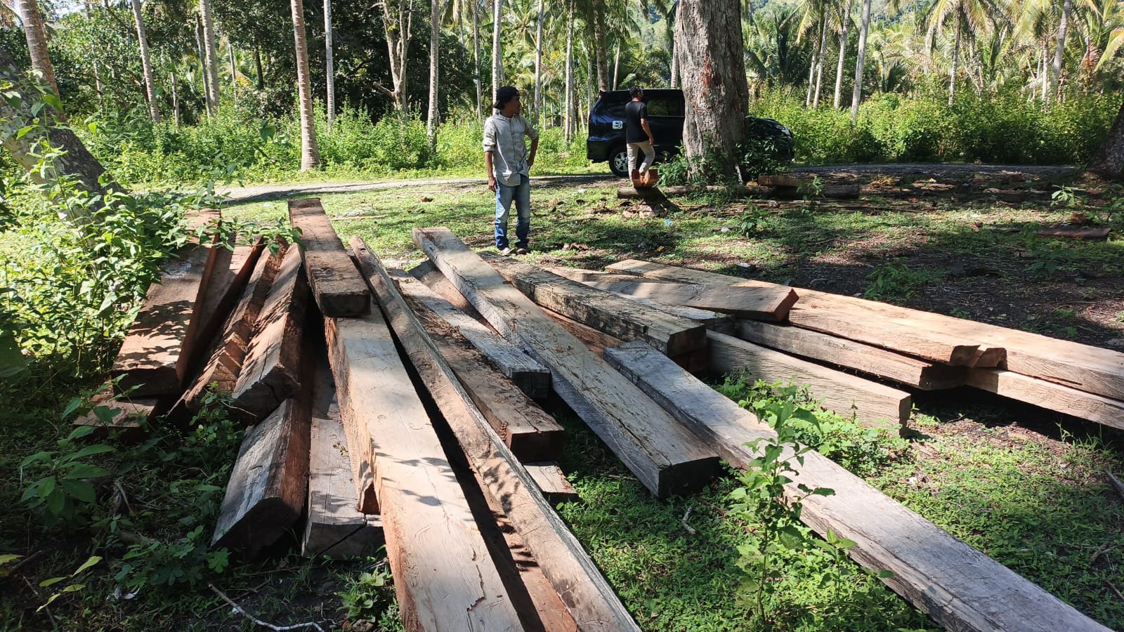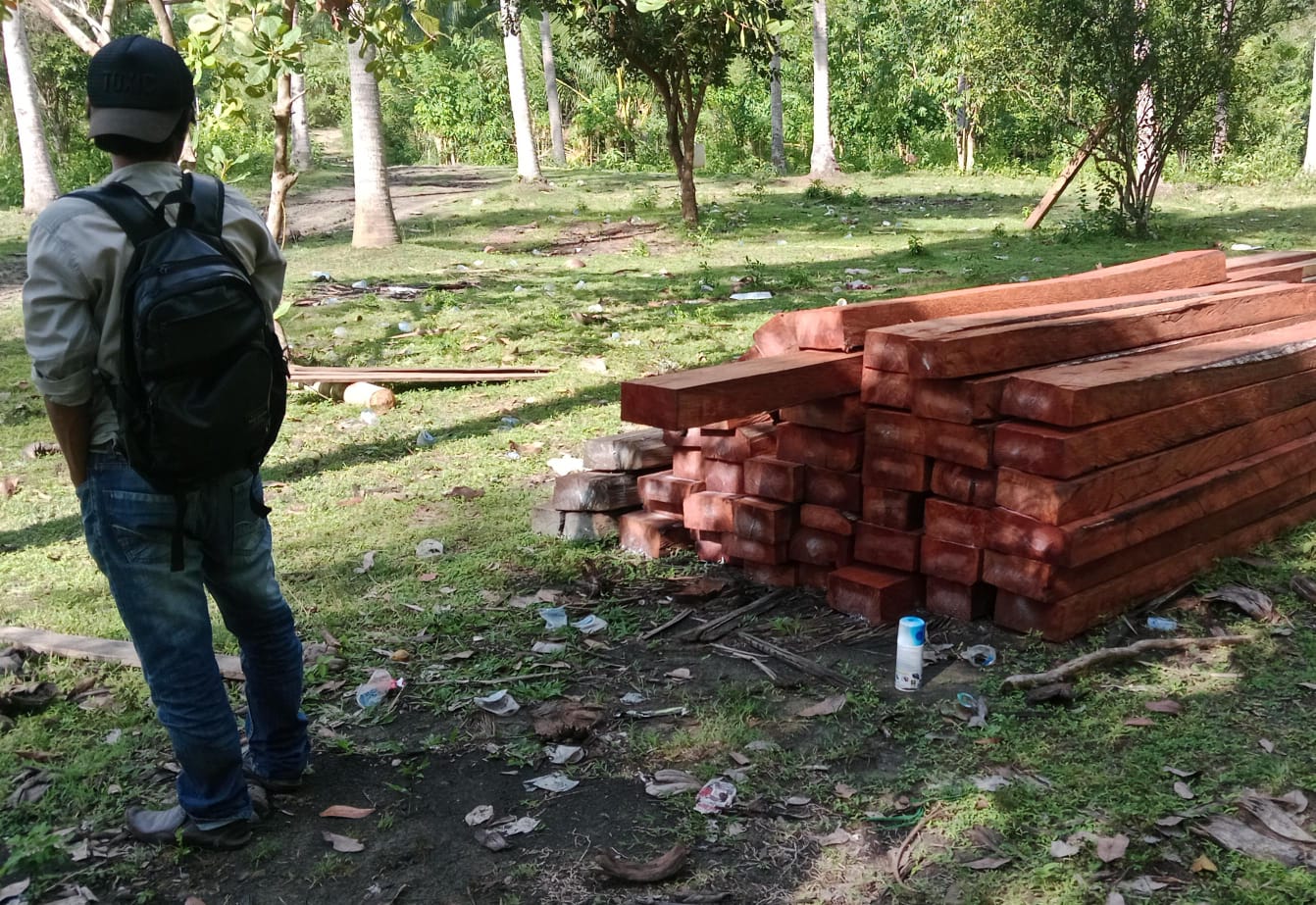 Meski begitu, pantauan media pada Jumat (27/2/2026) menemukan beberapa timbunan kayu di berbagai titik dengan ukuran mulai dari 10 cm x 25 cm x 5 meter. Jenis kayu yang diamati antara lain Gopasa dan Kume, termasuk kayu keras lokal bernilai tinggi.