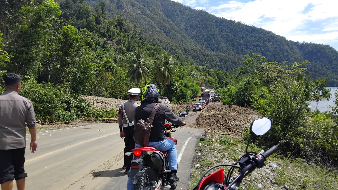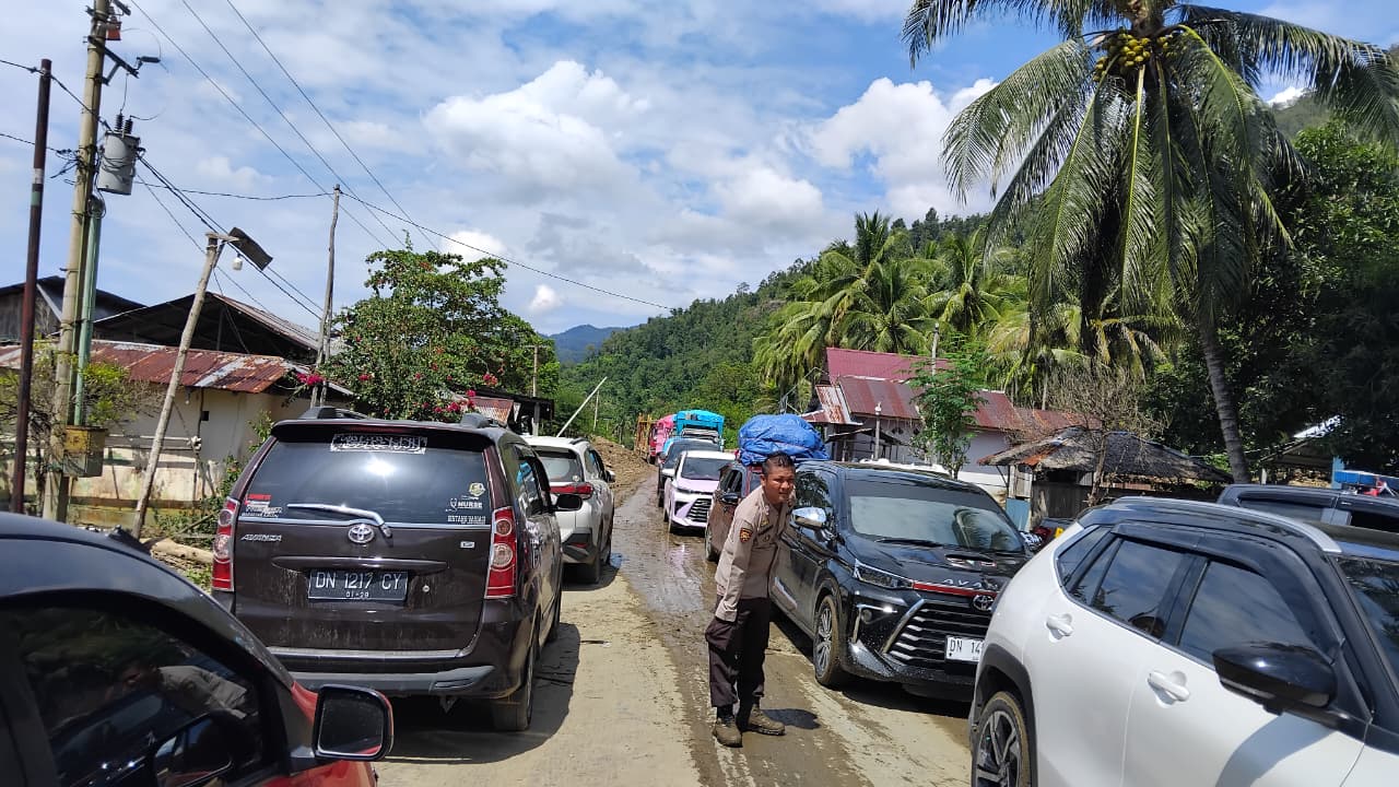 Pantauan media ini di lokasi, aparat gabungan dari TNI, Polri, serta Kasi Intelijen Kejaksaan turun langsung meninjau titik longsor. Petugas kepolisian juga terlihat mengatur arus lalu lintas untuk mengurai antrean kendaraan yang mengular di jalur utama Trans Sulawesi itu.