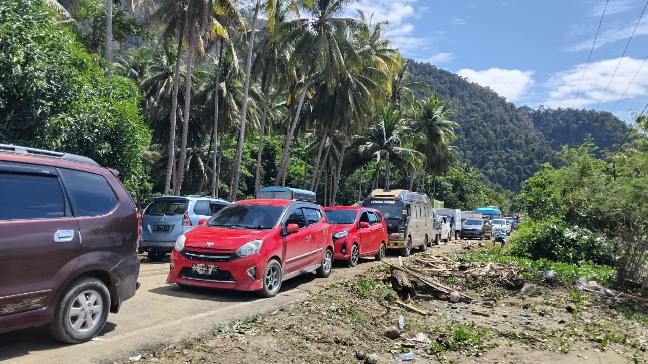 Kemacetan panjang ini disebabkan badan jalan tertutup material longsor berupa tanah, batu, dan lumpur setelah hujan deras mengguyur wilayah tersebut sejak Senin (6/10/2025) malam.